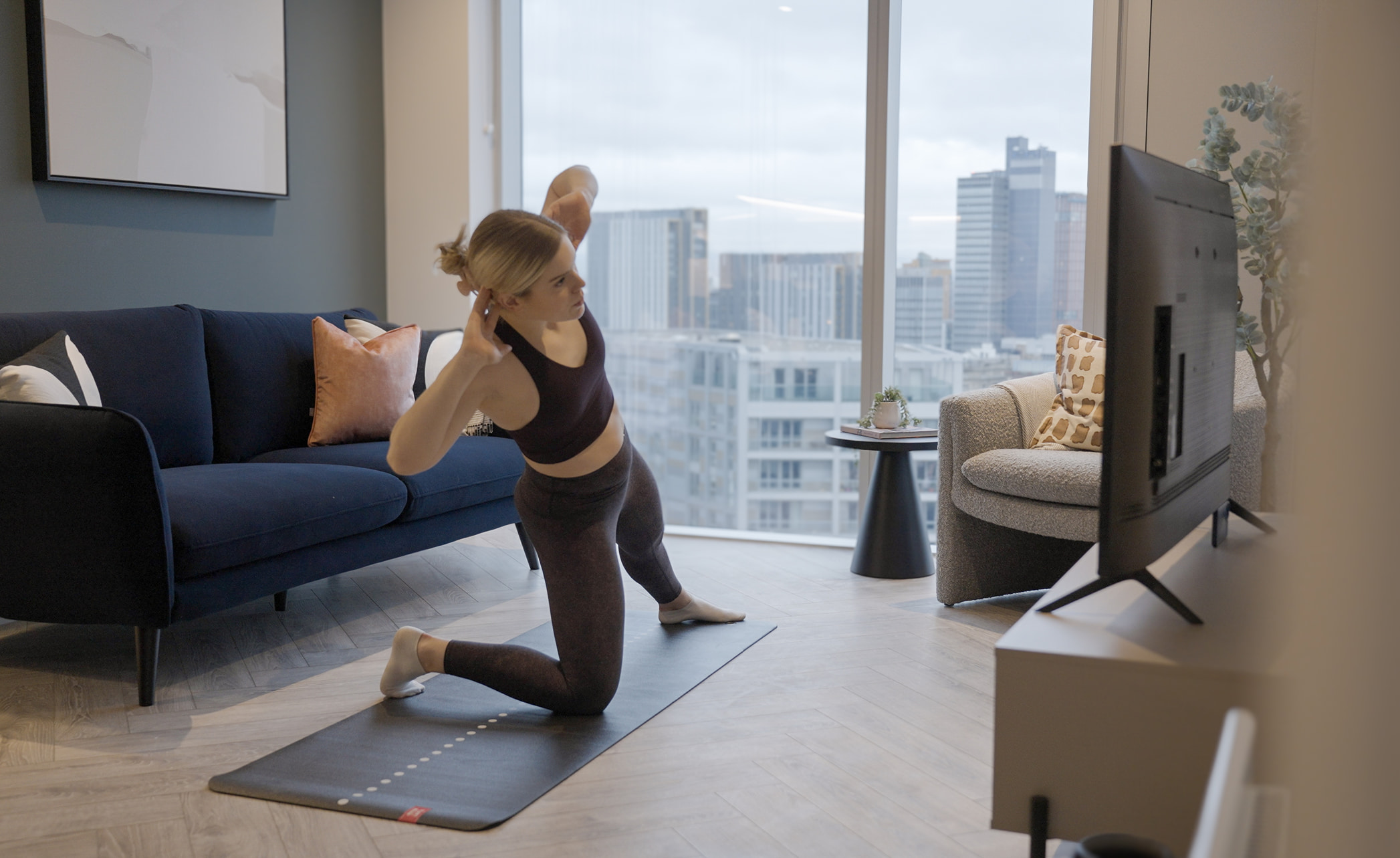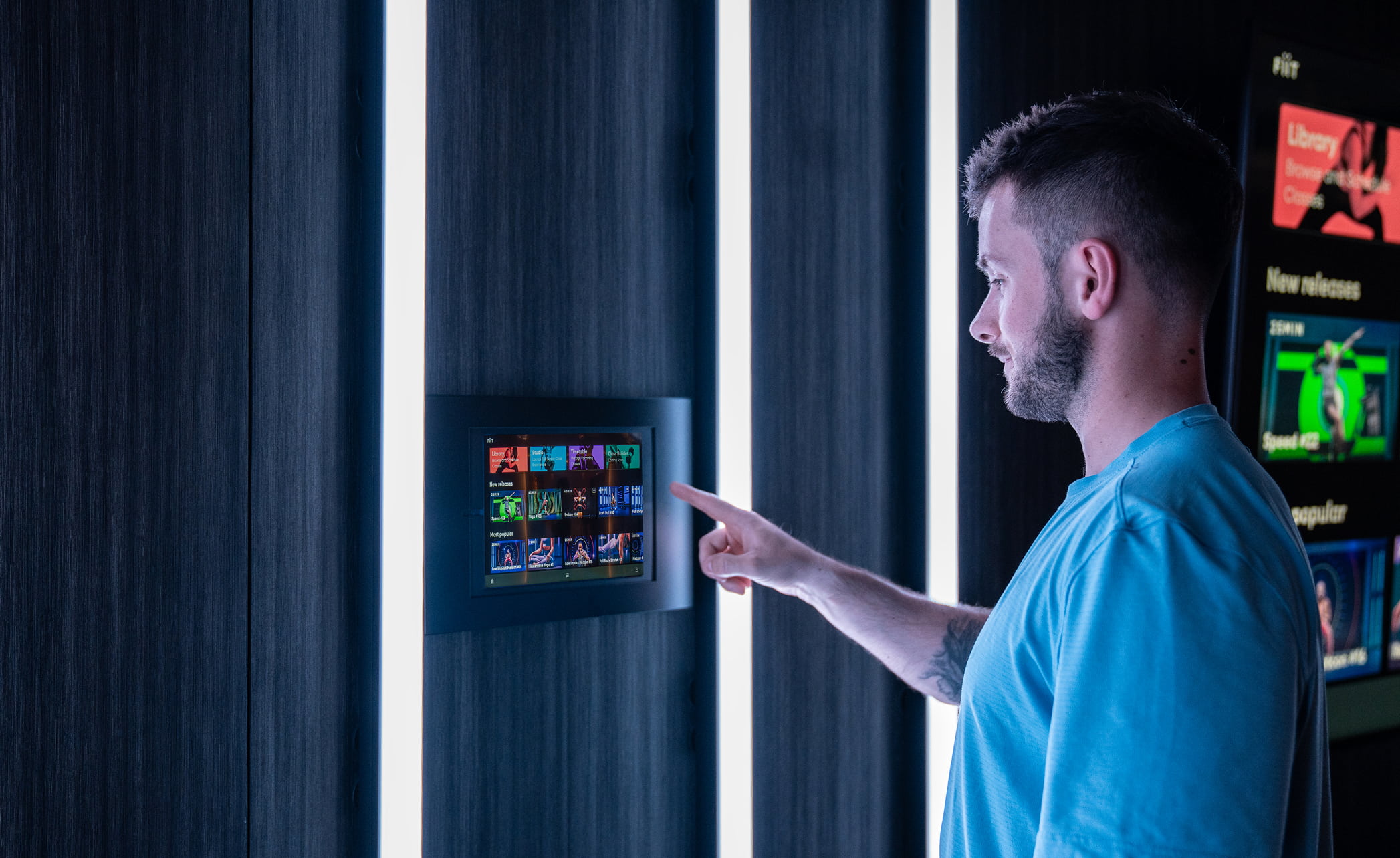On-demand, live, and virtual workouts available in gym suites, lounges, or resident living rooms streamed via smart TVs, tablets, or phones.